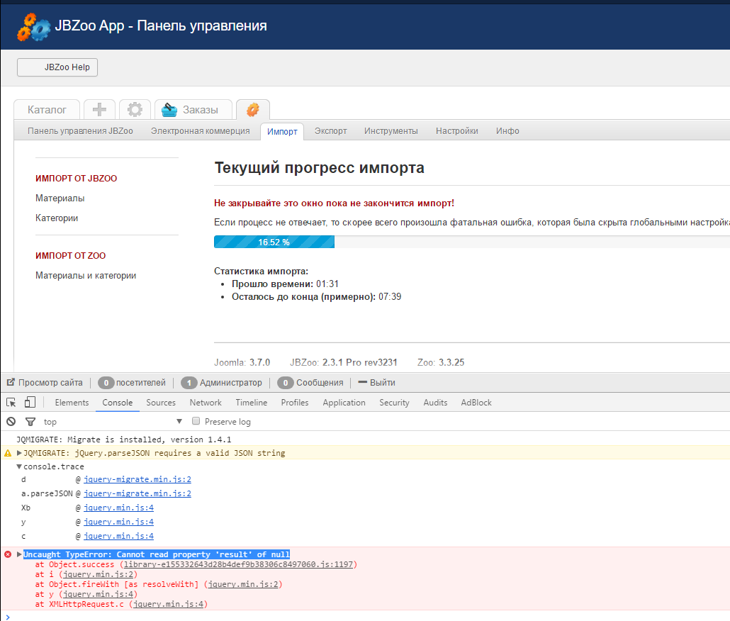 При импорте на одном и том же файле, на одном и том же месте 16.52% возникает ошибка.