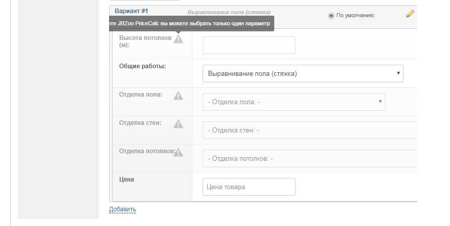 1. Думал использовать элемент (JBZoo Price Calc) Вывел чекбоксы хотел создать форму, но не тут то было