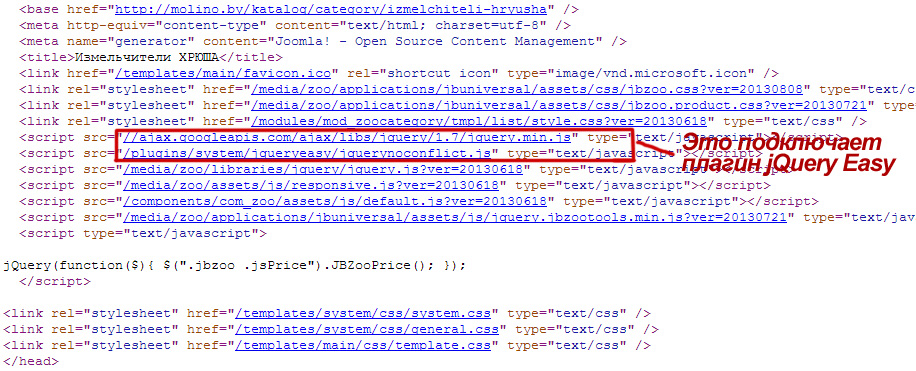 Вижу что не правильный порядок в подключении скриптов. Ведь первый должен идти этот скрипт "/media/zoo/libraries/jquery/jquery.js?ver=20130618", верно? Если да, то подскажите как можно поменять порядок.. В менеджере плагинов в порядке jQuery Easy стоит последний