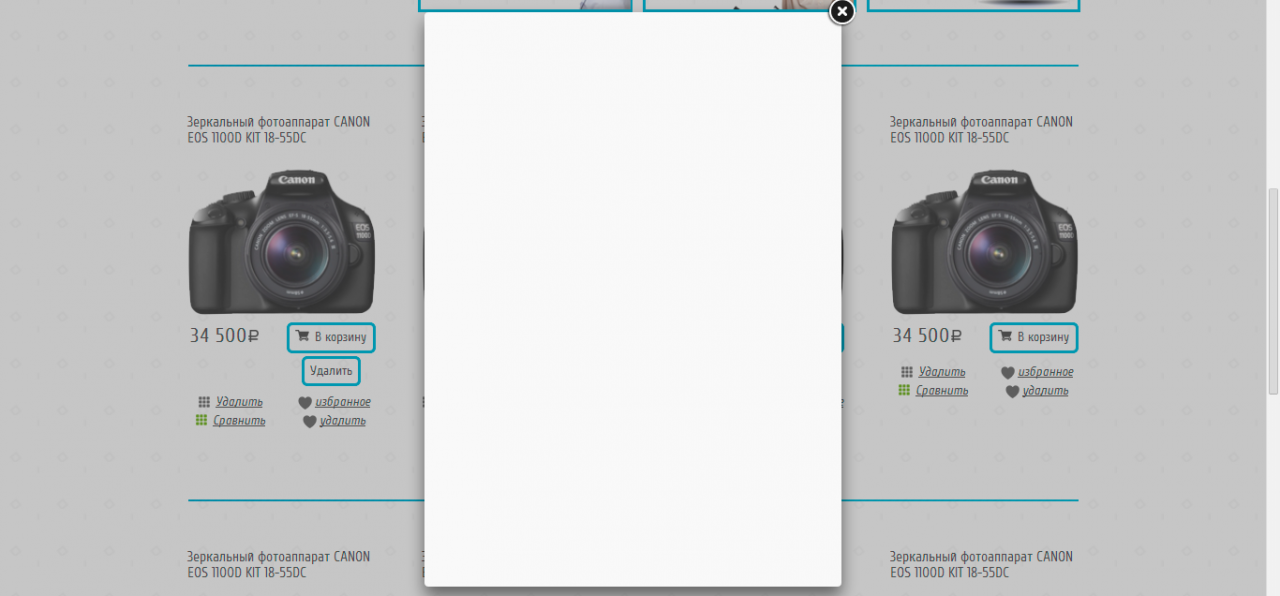 При нажатии "В корзину", появляется пустое окно поп ап.
