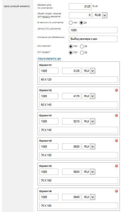 (по умолчанию)) у всех материалов и нет дополнительных вариантов цен.