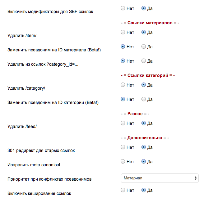 • Будьте предельно аккуратны с настройками ниже! Иначе вы рискуете навредить позициям в результах поиска Google и других аналогичных системах.